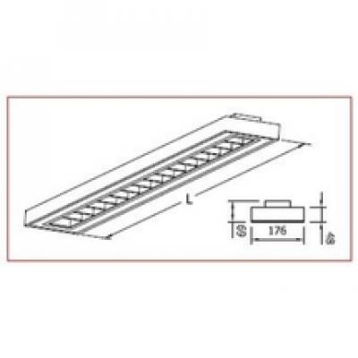 High performance lamellar aluminium optic with low UGR microprismatic diffuser suitable in rooms with VDT (lower than 1000 cd/mq for angles > 65°).