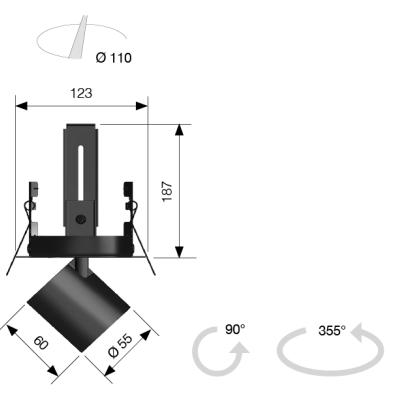 Recessed adjustable projector with extractable extruded aluminium body painted with polyestere powders after washing with demineralised water.