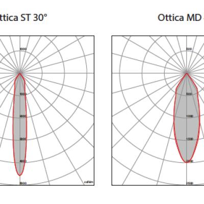 Metallized polycarbonate louver wide beam (code LA) medium beam (code MD) narrow beam (code ST) spot beam (code SP).