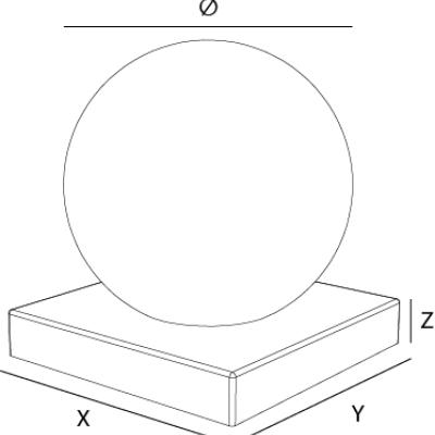 | Size | X (mm) | Y (mm) | Z (mm) | diametro | Kg. |