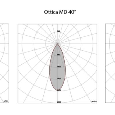 Óptica retráctil de 57 mm de policarbonato lenticular de haz amplio (cód.LA), haz medio (cód.MD), haz estrecho (cód.ST). Fuente de iluminación LED.