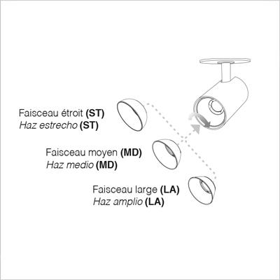 Projecteur LED orientable avec optiques èchangeables. Fixation en saille.