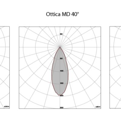 Optique rétractée de 57 mm en polycarbonate lenticulaire, faisceau large (code LA), faisceau moyen (code MD), faisceau étroit (code ST).