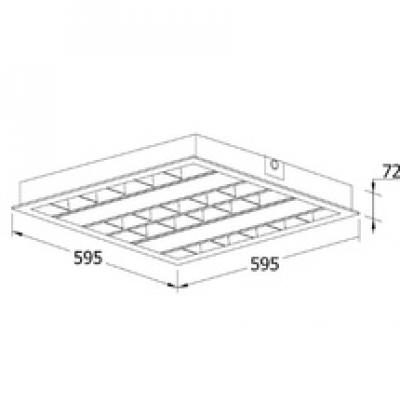 Ottica Dark a bassissima luminanza idonea in ambienti con videoterminale (inferiore a 200 cd/mq per angoli superiori a 65° trasversali e longitudinali) parabola in alluminio anodizzato con lastre in policarbonato microprismato.