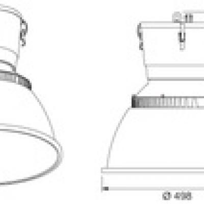 Riflettore in alluminio tornito 99.85%, ossidato e brillantato anodicamente per un elevato rendimento luminoso.
