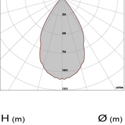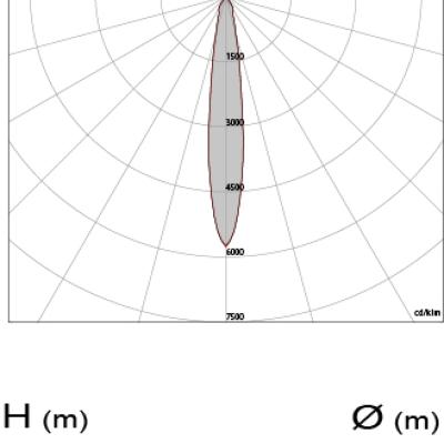 Ottica in policarbonato metallizzato fascio largo (cod. LA) fascio medio (cod. MD) fascio stretto (cod. ST) fascio spot (cod. SP).