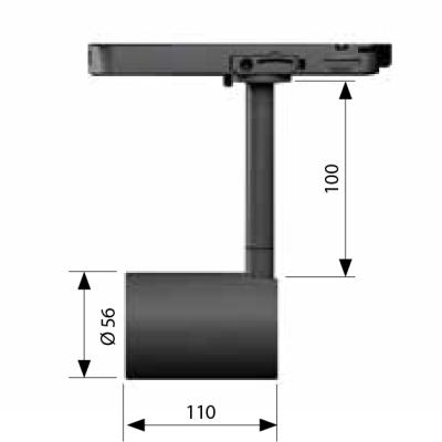 Proiettore LED a binario orientabile con ottiche intercambiabili.