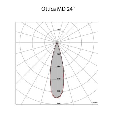 Ottica in policarbonato metallizzato fascio largo (cod. LA), fascio medio (cod. MD) fascio stretto (cod. ST) fascio spot (cod. SP).