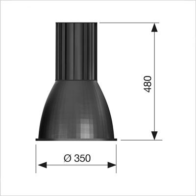 Riflettore prismatizzato in alluminio tornito verniciato.